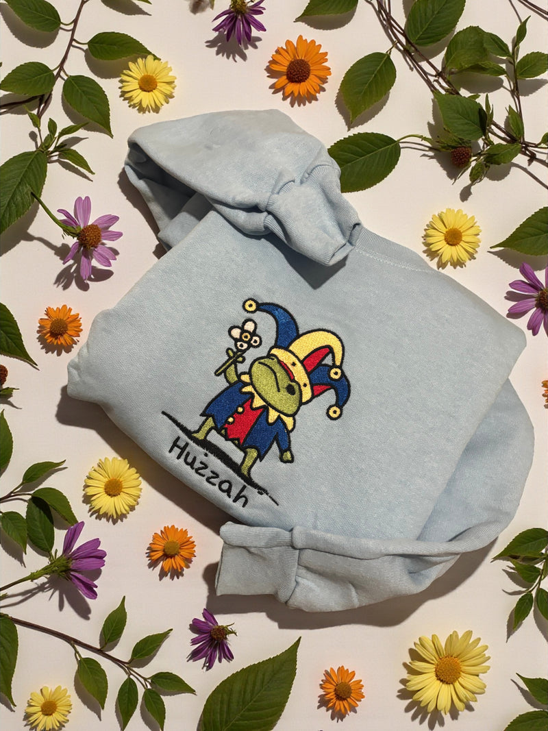 Huzzah Frog Embroidered Sweatshirt – Cottagecore Cozy Frog Gift